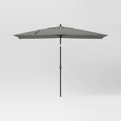 This 10-Foot x 6-Foot Rectangular Market Patio Umbrella with Black Pole from Threshold™ is a great choice for your outdoor space. Made with solid-colored, fade-resistant fabric for lasting outdoor use, the umbrella has a black pole and steel frame and is compatible with centered pole umbrella bases (sold separately). It’s easy to set up with no tools needed, and with a crank lift and push-button tilt, you can effortlessly adjust the umbrella to maintain the perfect shady spot.