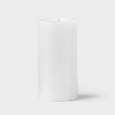 Give your home a warm and welcoming glow with this beautiful 6″ x 3″ LED Pillar Candles White from Threshold. This candle illuminates and creates just the right mood from table top to every nook and cranny of the home. It also makes a great gift for a loved one.