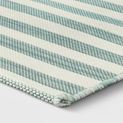 Protect your flooring and transform your outdoor seating space with this Narrow Worn Stripe Outdoor Rug from Threshold™. Featuring an allover striped design in colorful hues against a neutral backdrop, this striped outdoor rug is all you need to change the look of your outdoor space. Thanks to its latex backing, this outdoor area rug stays in place while creating secure footing for you and your guests. Perfect for placing in high-traffic areas, its thin, flat pile design also makes it easier to clean and maintain.