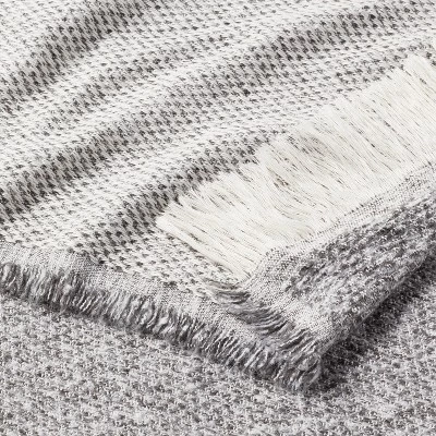 Add warmth to any space with this Marled Boucle Throw Blanket with Fringe from Threshold™. This solid gray throw blanket with a marled effect makes a fashionable and cozy accessory for the fall or chilly season. Made from woven boucle material, this midweight throw blanket is both warm and comfortable to use. The coordinating fringe accents add casual texture and decorative flair. Just toss it on your bed or drape over your couch to offer extra warmth and style.
