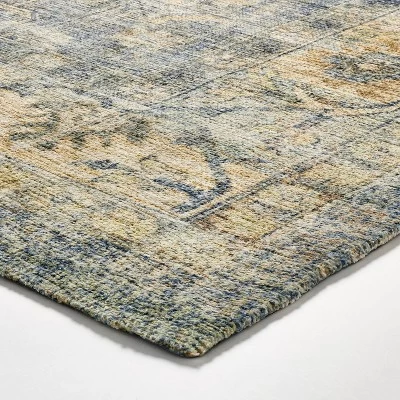 Add some timeless flair to your flooring with this Woven Floral Distressed Rug from Threshold™ designed with Studio McGee. This rectangular area rug is designed with a floral pattern in blue, beige, and other earthy shades with a distressed finish, and it’s framed by a complementary border to add old-world charm to your space. With 100% cotton backing and a low pile height, the rug is easy to spot or wipe clean and suitable for high-traffic areas like your den or entryway.