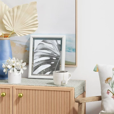 Present your travel photos or family photos in this 9.5″ x 11.5″ Matted To 8″ x 10″ Thin Profile Float Single Image Frame – Threshold™. This rectangular picture frame featuring a sturdy construction offers a mixed appeal to any table surface. Supported on a contrasting stand for standing stability, this freestanding photo frame can be displayed vertically on a variety of flat surfaces. The glass front helps protect your photo from dust, moisture and damage. Place this piece on your shelf, desk, side table or mantel for a versatile display anywhere in your home.
