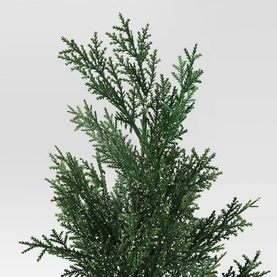 Decorate your home or office space with this Artificial Plant Shimmer Pine Tree from Threshold™. This artificial pine tree is decorated with shimmer detailing for a lovely look, and it comes potted inside a ceramic container for instant display. The artificial construction makes it maintenance free, and you can add colorful ornaments and a star topper to dress up the tree.