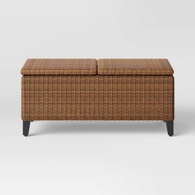Elevate the style of your outdoor entertainment space with this Brookfield Steel Wicker Folding Coffee Table from Threshold™. Simple yet functional, this wicker folding coffee table adds rustic charm to any space. The all-weather and rust-resistant wicker stands up to the elements, making this coffee table suitable for outdoor use, and the foldable design provides you with extra storage or display space. Designed in a brown hue, this wicker coffee table blends seamlessly with your space while also boasting convenient storage space for you to utilize.