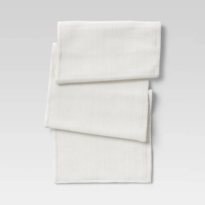 Elevate your dining experience with this Cotton Solid Runner from Threshold™. This rectangular table runner makes a versatile accessory for decorating your dining table. It features a fresh white color for easy coordination with a wide range of aesthetics, along with hemmed edging to complete the neat appeal. The cotton runner not only helps protect your table against spills, but also creates an inviting spread for your decorative centerpieces. Pair with matching placemats and table napkins to create a cohesive look.