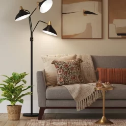 Adjustable Arc Floor Lamp With Swivel Head Black (Includes LED Light Bulb) – Threshold™