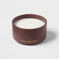 15oz Ceramic Jar 3-Wick Black Honey Vanilla Candle Plum Purple – Threshold™