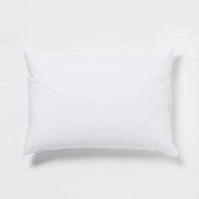 Give your bedroom a big comfort upgrade with this Microgel Down Alternative Bed Pillow from Threshold™. Made with microgel that retains its shape over time, this medium-density pillow has a cotton-blend exterior to provide you with softness that your head is sure to love. Plus, the stain-release design helps the pillow look great year-round. Whether enjoying a good book or taking an afternoon nap, you’ll love leaning on this bed pillow.