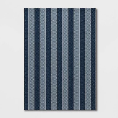 Add some nautical notes to your living room, sunroom, patio or deck with the Beach Stripe Rug from Threshold™. With a construction that’s suitable for use indoors or out, this rectangular blue rug adds a chic pattern to your decor that will tie together your seating ensemble while adding a little extra color and texture. The decorative rug is adorned with chevron-striped design in alternating shades of dark and light blue that’s both timeless and fun, and easily fits in with a wide variety of home decor styles.