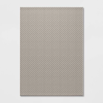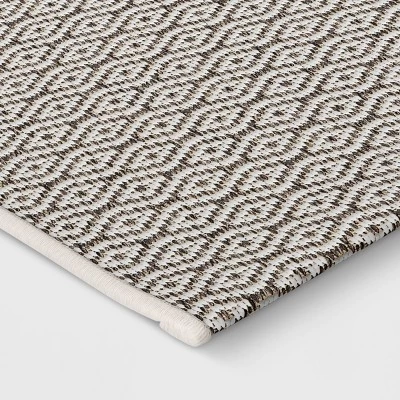 Add some contemporary flair to your patio, deck or porch with the Outdoor Diamond Rug Diamond from Threshold™. This outdoor rug is a great choice for your porch, patio or deck, and it combines an elegant look with comfortable cushioning underfoot and easy care (just rinse with a hose). The rectangular outdoor rug is decked out in an intricate diamond pattern in gray and white that will easily coordinate with your existing decor. Plus, the geo-pattern rug has a spray latex backing to help keep it in place wherever you choose to arrange it.