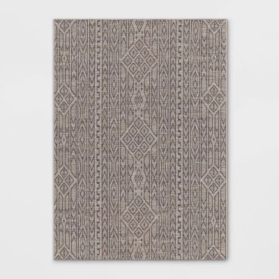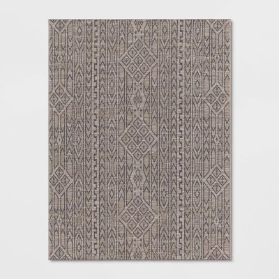 Spruce up your porch or patio with this Outlined Geo Pattern Outdoor Rug from Threshold™. This woven rug features a dark-outlined geometrical pattern on a neutral-color background, making it easy to blend with any decor style. It boasts fade- and UV-resistant fabric with quick-drying properties for convenient outdoor use, and the flat pile height makes the rug easy to clean whenever it needs a quick refresh.