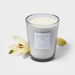Colored Vase Glass With Dustcover Rainwater Lily Candle Gray – Threshold™