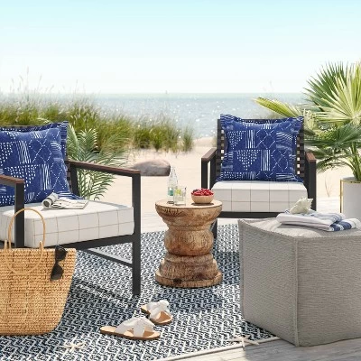 Relax outdoors in style with the help of this Deep Seat Cushion from Threshold™. Made from a water-repellent and UV-resistant fabric to help keep it protected from the elements, this outdoor deep seat cushion features 6-inch thickness with a soft fill for comfortable seating. Best of all, it features a removable cover for easy cleanup whenever needed. Showcasing a woven grid pattern on a solid background, it’s sure to add a touch of modern style to your outdoor seating space. Scotchgard™ Protection is specially formulated with sustainability in mind. They can stand up to the wettest conditions and they’re carefully designed to repel and resist nearly all water based stains.